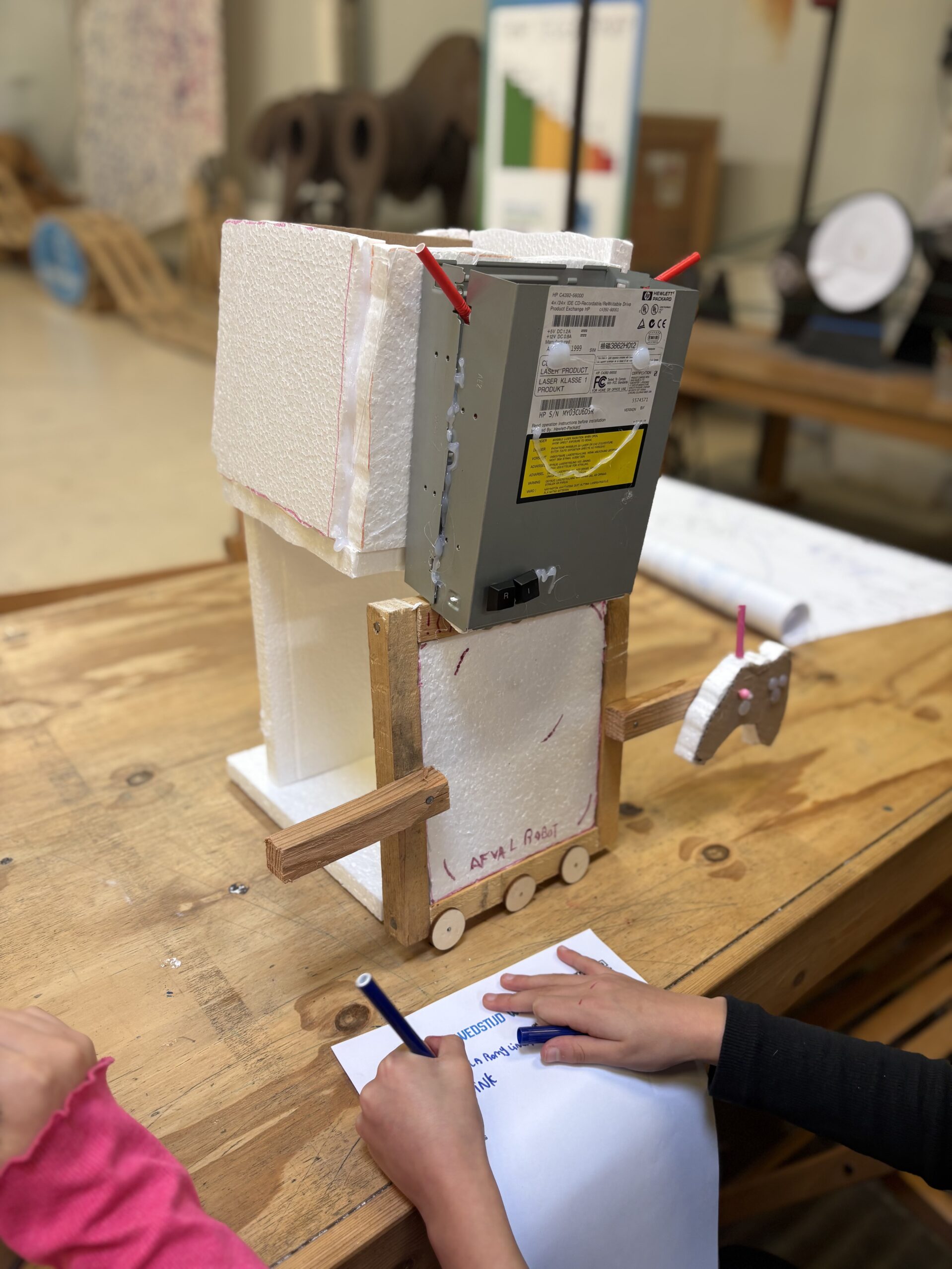 Hij gooit het afval boven in de bak