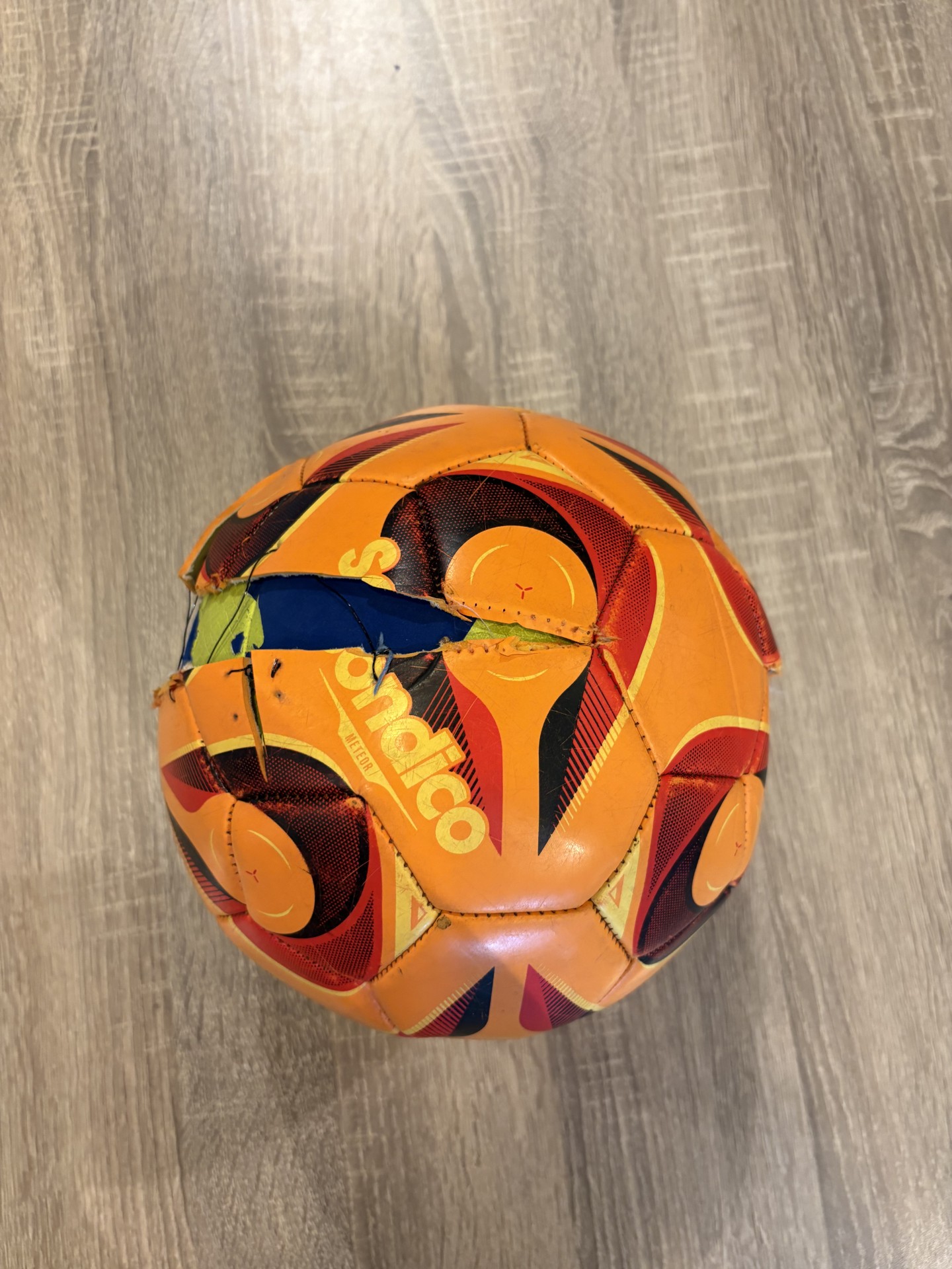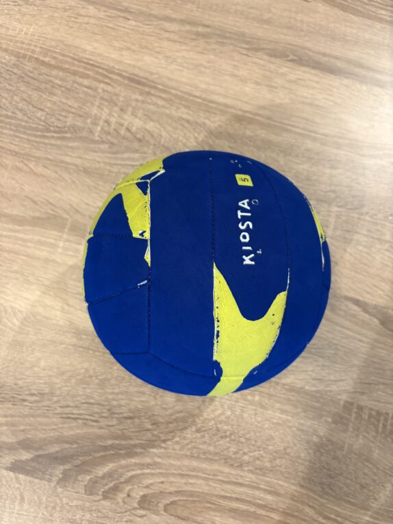 De basis is een volleybal. Je kan er twee lagen bijvoegen: een van een basketbal en van een voetbal. Het kost niet meer dan €35,-.
