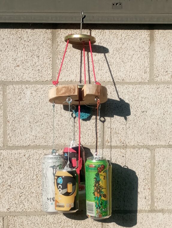 Als we de blikjes wouden knopen liep het een beetje moeilijk.