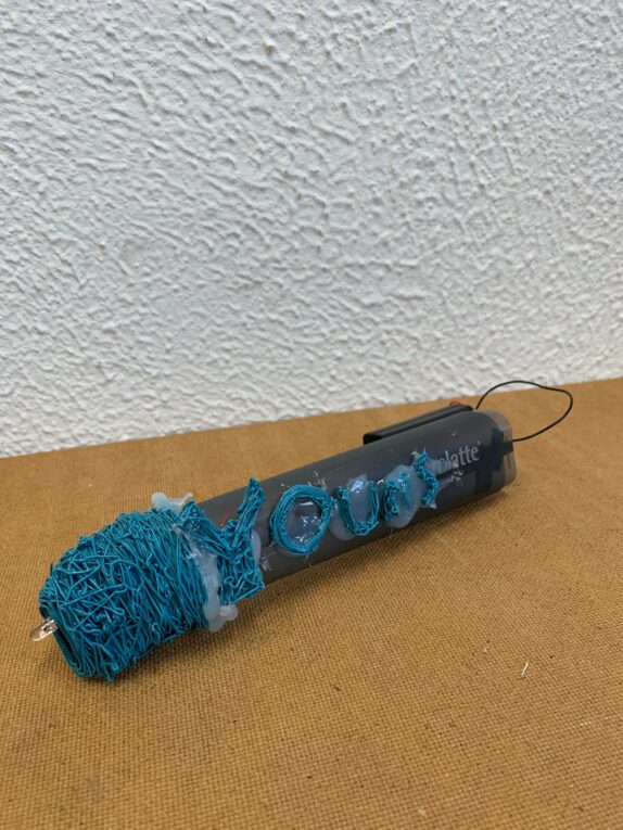 Ik heb een lamp gemaakt en hij is heel duurzaam. Hoewel we weinig tijd hadden, is het me toch gelukt om een mooi resultaat neer te zetten. Hij lijkt op een gewone lamp, maar het is eigenlijk een zaklamp. Ik heb hem een beetje versierd en nu ziet hij er heel leuk uit.