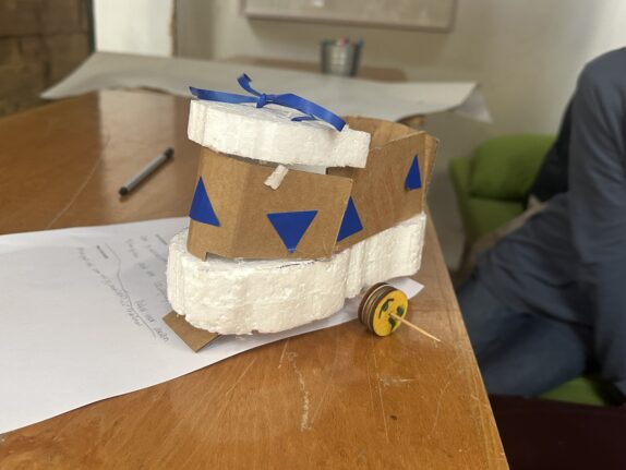 Als je loopt dan zuigt je schoen aval van de grond er zit een deurtje en dan valt het aval in de bullebak.